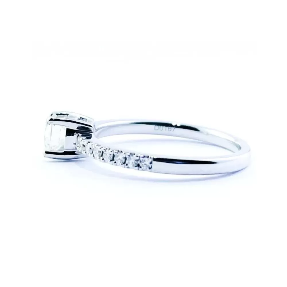 Anillo de Compromiso en oro blanco con diamantes talla brillante (0.48 ct, color J, pureza VVS2).