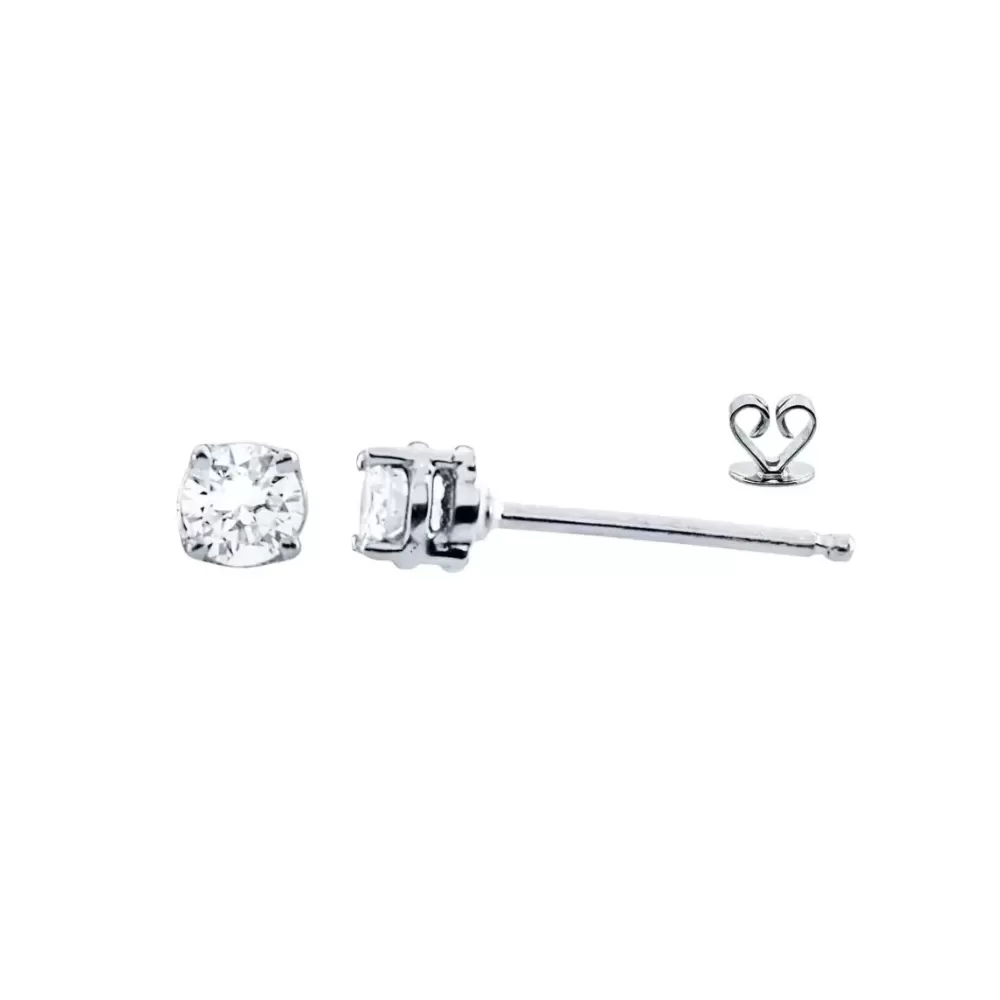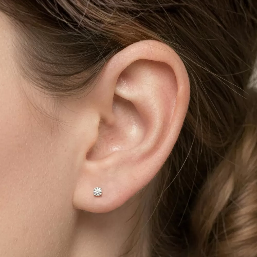 Aros solitarios en oro blanco con diamantes talla brillante (0.20 ct, color G-H, pureza VS2).