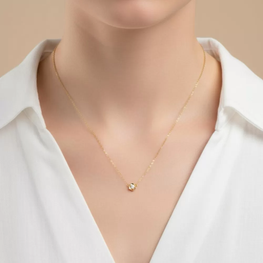 Collar en oro amarillo con diamante talla brillante.