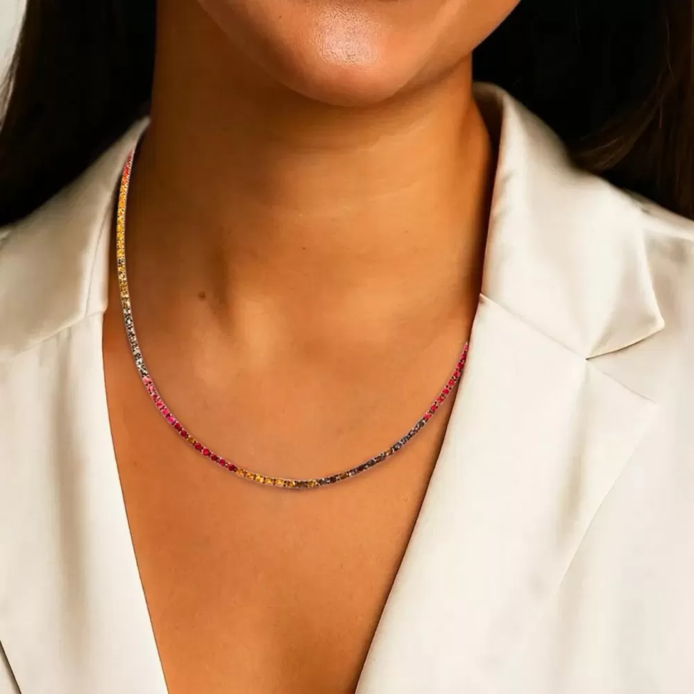 Collar en oro amarillo con zafiros de colores talla brillante.
