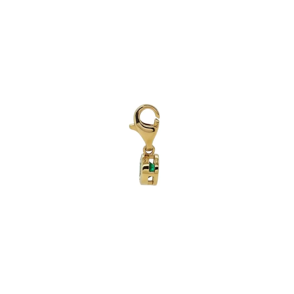 Dije de Nacimiento Mayo en oro amarillo con esmeralda talla brillante.