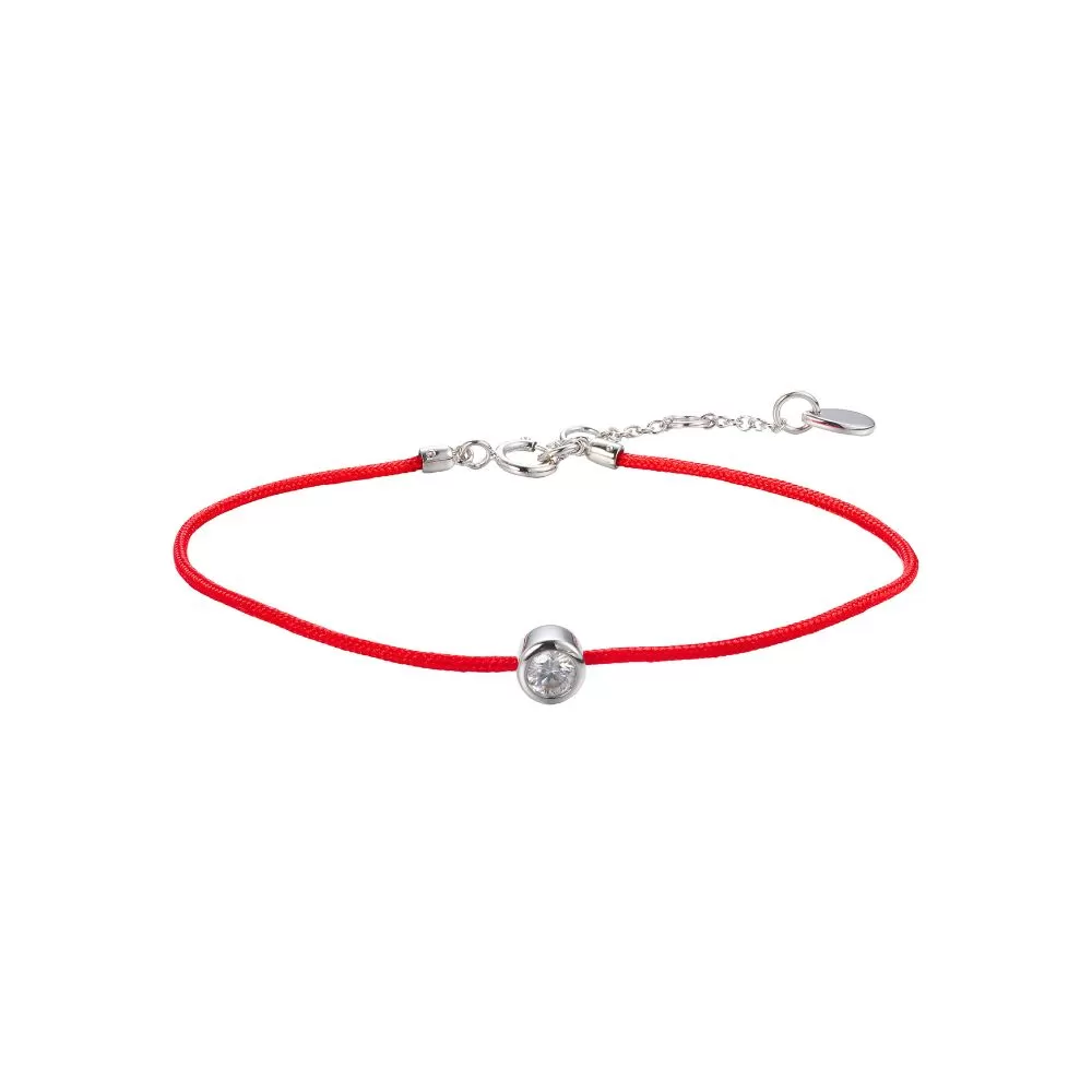 Pulsera hilo rojo en oro blanco con diamante talla brillante (0.17 ct, color G, pureza VS).
