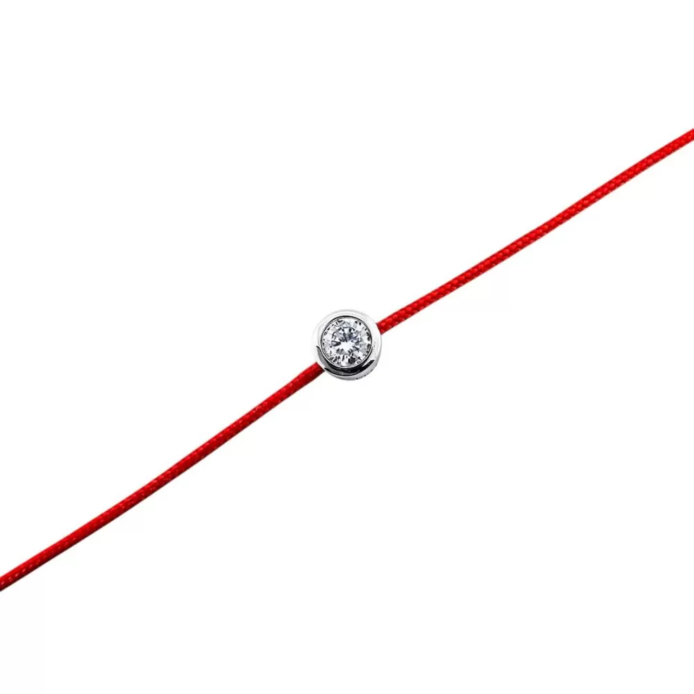 Pulsera hilo rojo en oro blanco con diamante talla brillante (0.13 ct, color G, pureza VS).