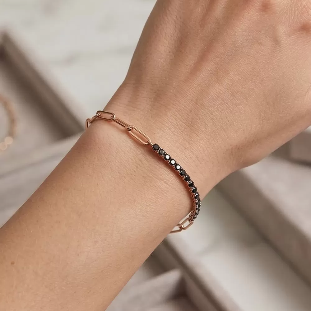 Pulsera en oro rosa con diamantes Fancy Black talla brillante.