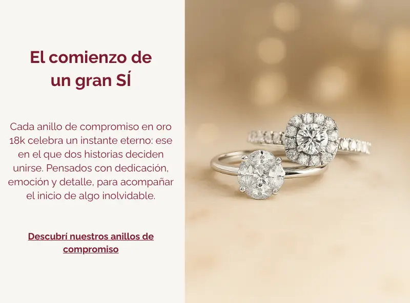 Quiero ver Anillos¿Querés conocer más sobre tus joyas? Te guiamos en el proceso desde la selección de la pieza ideal hasta consejos sobre cómo guardarla, limpiarla y conservarla hermosa por siempre. Descubrí y aprendé sobre el mundo de la joyería fina con nosotros.
